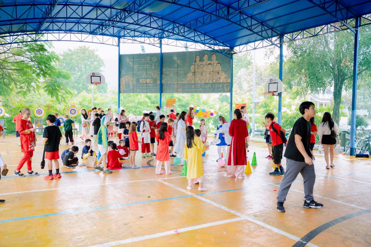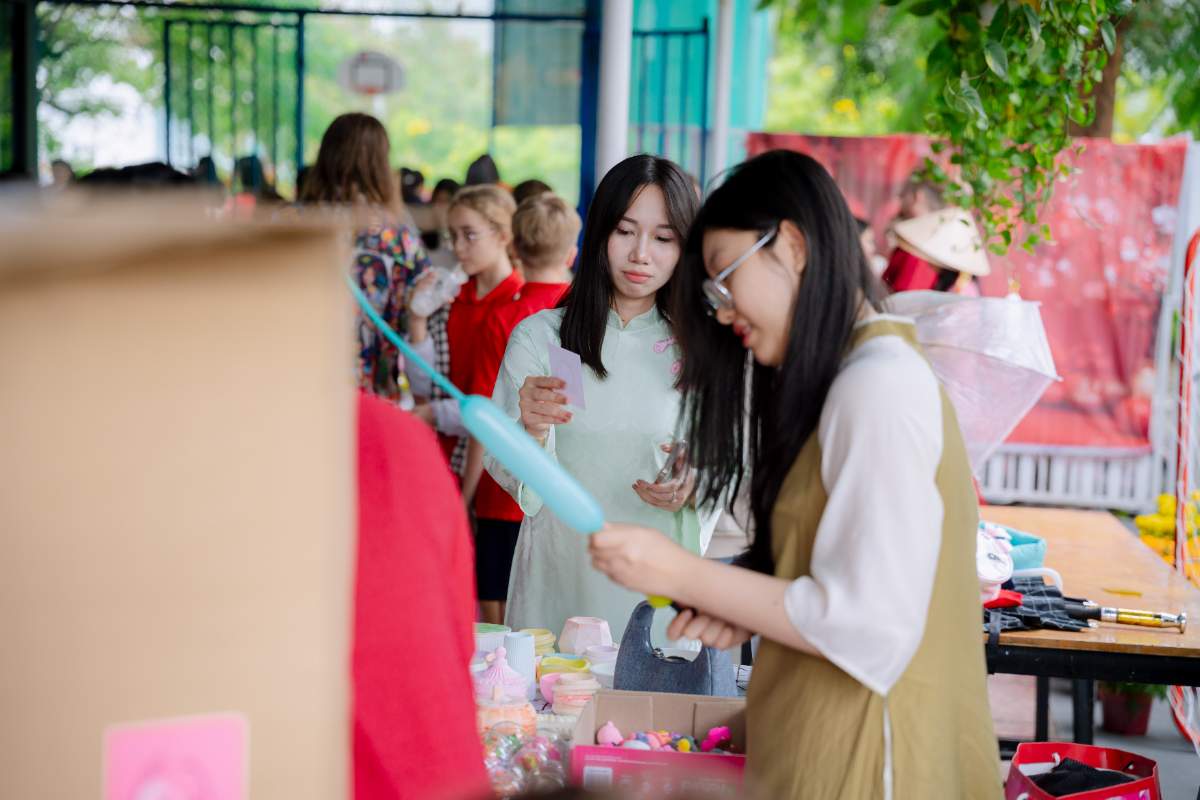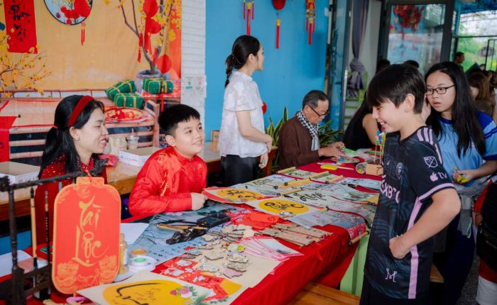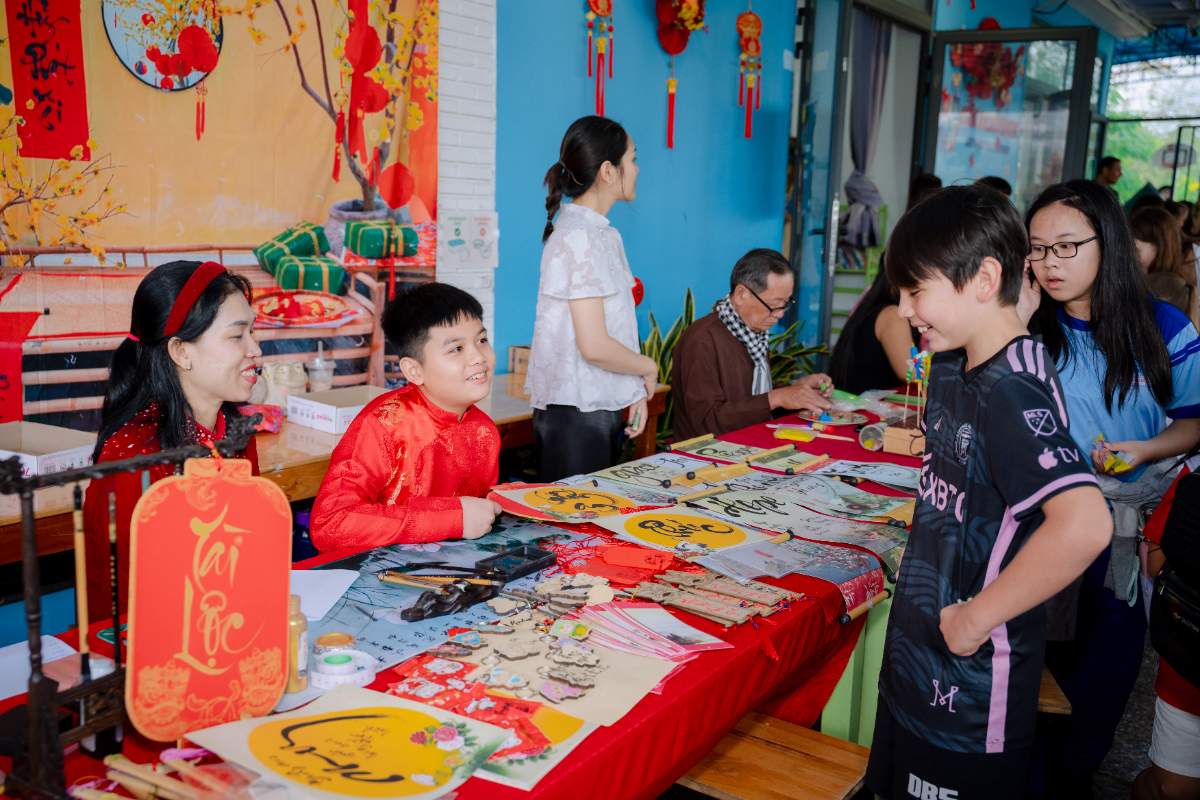 The magic of the fair began weeks before the gates opened. Our students dedicated significant time to transforming the campus with traditional Tet decorations. The school was a sea of: